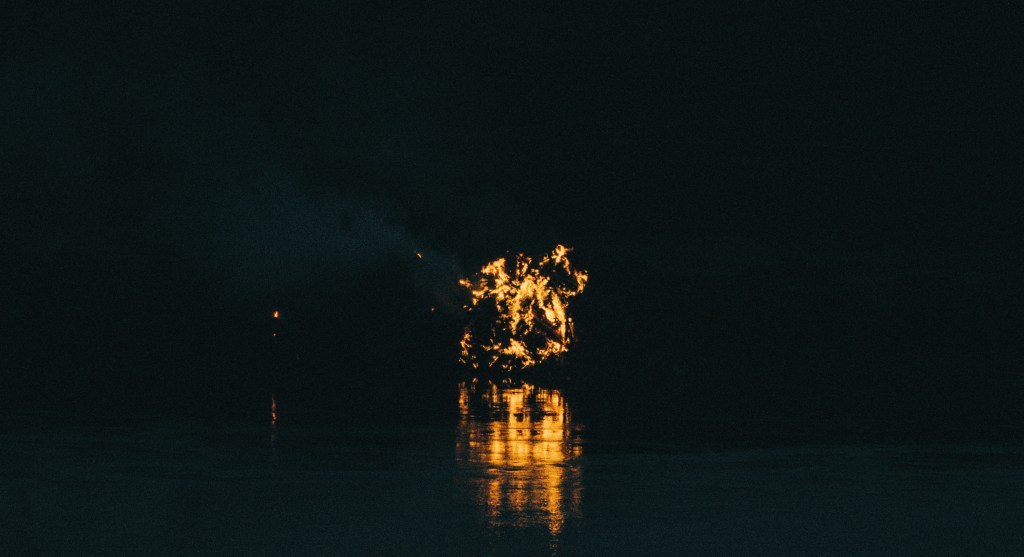 The men disembarked quickly, cutting the lines and towing the vessel into the current. As the Caroline drifted with the river, her flames licked the night sky, a blazing torch adrift on the dark water. The fire’s reflection shimmered like molten gold across the surface.